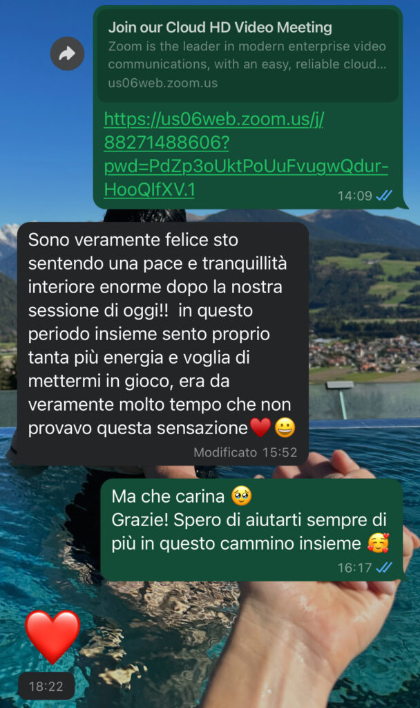 Se non puoi partecipare a una sessione, avvisami con anticipo e troveremo insieme una nuova data. La flessibilità è parte integrante del nostro lavoro insieme.